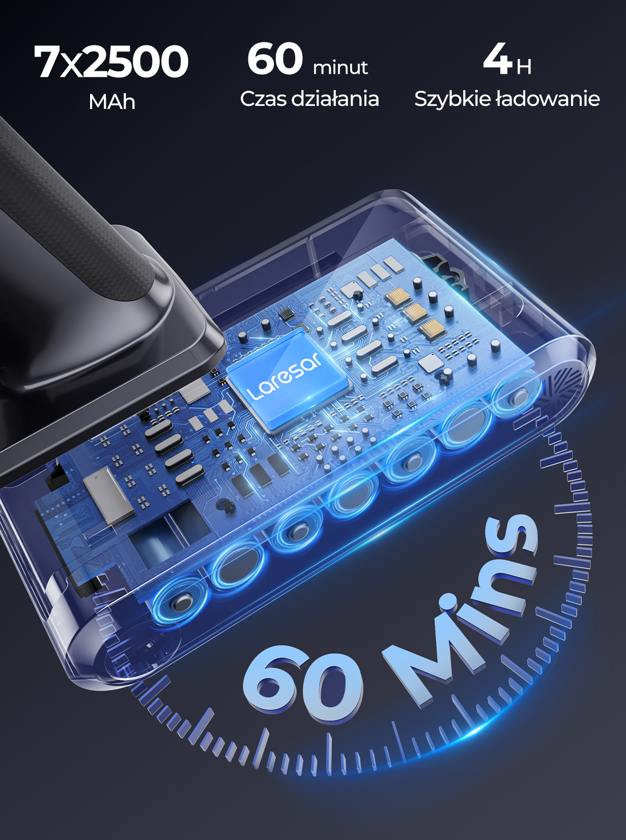 LARESAR V8 48000PA 500W Akku-Staubsauger für Auto, 60 Minuten Haushaltsgeräte, kabellos, abnehmbarer